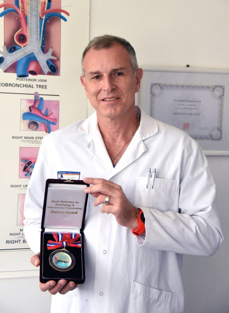 Hervé Dutau, notre vice président, a reçu cette année de la part de la WABIP (World Association for bronchology and interventional pulmonology) le prix WABIP-Dumon Award pour sa carrière dévolue à la pneumologie interventionnelle. Tout le GELF le félicite chaleureusement pour ce prix qui honore aussi l’ensemble de notre groupe .