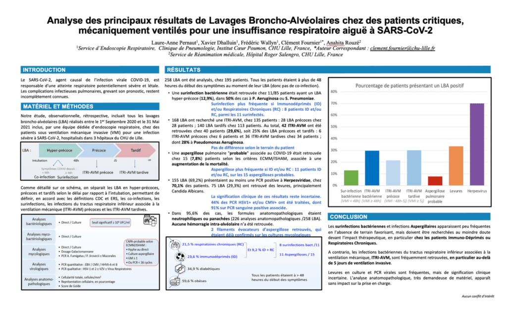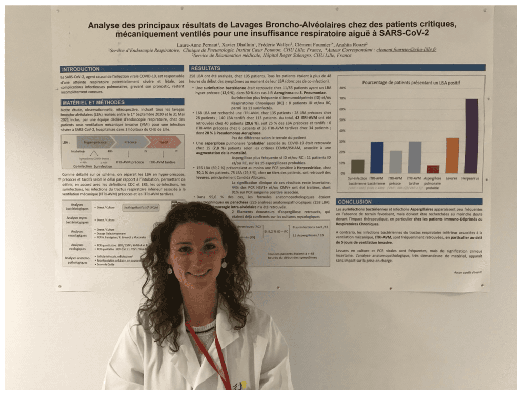 Cette année, le prix du GETIF a récompensé le travail de Laure-Anne Pernaut, interne du CHU de Lille, pour son analyse des résultats des LBA chez des patients admis en réanimation pour infection à la SARS-CoV2. Toutes nos félicitations !