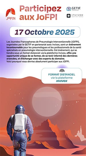 Les Journées Francophones de Pneumologie Interventionnelle (JoFPI) reviennent le 17 octobre 2025 en format 100% digital via la plateforme INVIVOX. Organisées par le GETIF SPLF, ces journées sont l’événement incontournable pour tous les spécialistes en pneumologie interventionnelle et chirurgie thoracique.