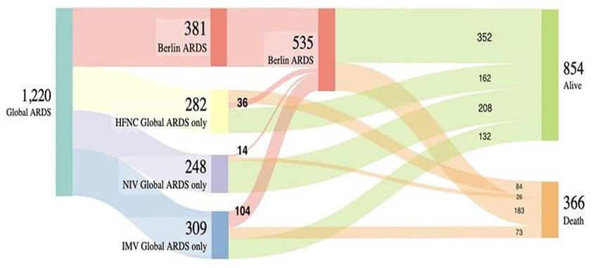 Figure : Diagramme de Sankey illustrant le chevauchement et la progression possibles chez les patients atteints de SDRA