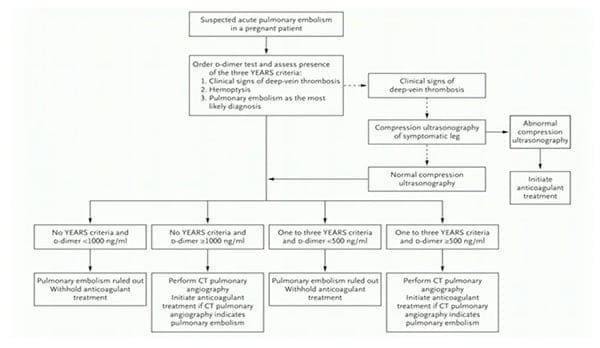 Deux problématiques principales sous-tendent ce raisonnement difficile. D’une part nous disposons de peu de preuves scientifiques spécifiques susceptibles de nous aider à gérer une patiente enceinte suspecte d’embolie pulmonaire (EP). D’un autre côté, les conséquences d’un mauvais diagnostic ou d’un traitement anticoagulant prolongé sans confirmation diagnostique pendant la grossesse peuvent être sévères. Des recommandations récentes permettent enfin de guider le clinicien dans sa décision.